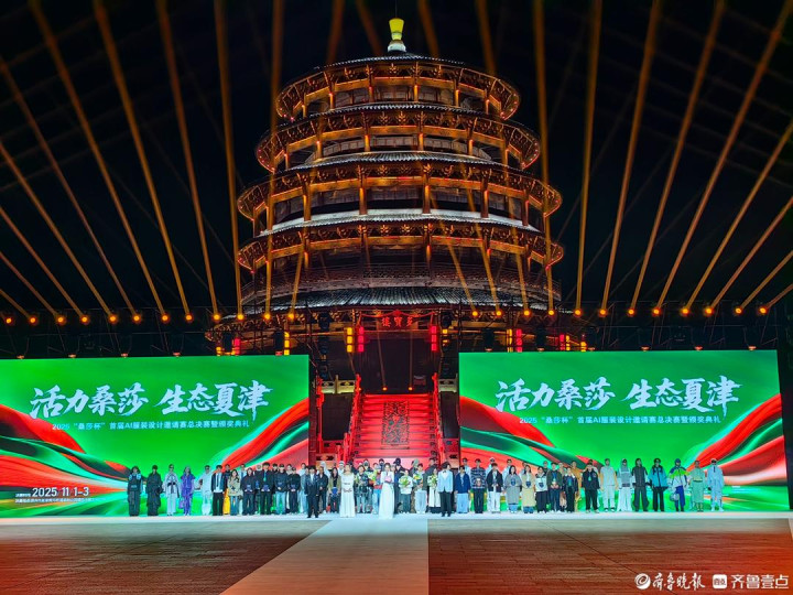 在11月3日晚,举办的“活力桑莎 生态夏津”2025“桑莎杯”首届AI服装设计邀请赛总决赛暨颁奖典礼上,走秀环节,模特身着由夏津古桑树纤维与鸿泰鼎莱赛尔混纺的礼服登场。设计师通过AI算法模拟出桑蚕丝特有的“珍珠光泽”,与碳足迹减少40%、能耗降低30%生产的莱赛尔纤维完美融合,实现古桑纤维的数字化重生。当模特转身时,裙摆上由激光雕刻的桑叶纹路在灯光下泛起涟漪,仿佛黄河故道的桑林在风中摇曳。